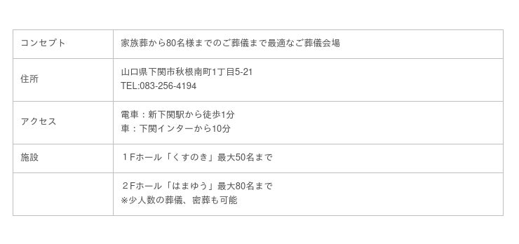 「シティホール新下関」は、地上2階建てで、2つのタイプの違った葬儀会場を備え、各宗派対応の法要を執り行え、少人数の葬儀、家族葬、社葬、直接大切な家族様も御安置から四十九日法要、1周忌、3回忌と安心してお任せいただけます。
