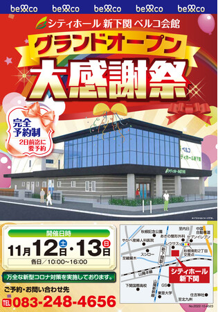 人生の二大行事である「冠婚葬祭」を、互助会という助け合い事業を通じて、お手伝いしてきた株式会社ベルコ(本社:大阪府池田市、代表取締役社長:齋藤 斎、以下「ベルコ」)は、2022年11月に新下関駅前に「社葬」から「家族葬」の多種多様なご葬儀に対応できる「シティホール新下関」を新規開設いたしました。