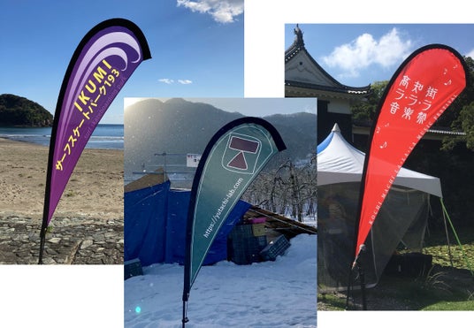 『Pバナー』はイベントでよく見かける『P』の形をしたフラッグで、遠くからでもよく目立つと大変好評をいただいています。
