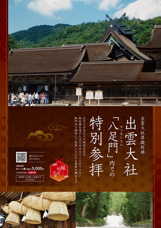 TSKさんいん中央テレビ(本社:島根県松江市向島町140-1)の旅行事業部門は、2024年3月から、出雲市の出雲大社で「八足門(やつあしもん)」内特別参拝ツアーを企画・催行しています。