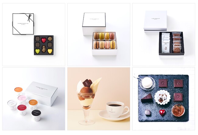 「ピエール マルコリーニ グランフロント大阪店」では、“自分が作るチョコレートを通じて人々に幸せを運びたい”という「Bean to Home(R)」の理念のもと、カカオ豆の選定から焙煎に至るまですべてを自社で手掛け卓越した創造力で生み出されたチョコレート菓子のほか、焼き菓子、マカロン、アイスクリーム、ソルベ、ドリンクメニュー、カフェメニューを提供します。
