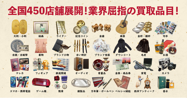 買取大吉は一般ユーザーを対象にしたリユース品の買取専門店です。貴金属やブランド品を中心に、時計や切手、古銭、骨董品、商品券、携帯電話やカメラ、その他電化製品に対応しています。大型家具以外は、ほぼ何でも買い取るという取扱品目の幅広さが「大吉」の特徴です。小売は行わず、文字通り一般ユーザーからの買取りに特化しています。2021年度の調査で「買取価格満足度」「友人にお勧めしたい買取専門店」「買取専門店口コミ高評価」で3冠を獲得している、お客様が安心して地域のコミュニティーセンターのようにご利用できる店です。47都道府県で約450店舗以上を展開し、中古ブランド業界2位の店舗数に成長しています。
