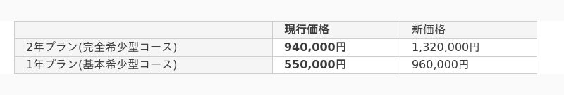 2025年3月1日以降にお申込の方は、以下の新価格が適用されます。