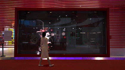 昨年150周年を迎えた資生堂のブースにて発表した今回のディスプレイでは、通りかかる人の動きを検知し、