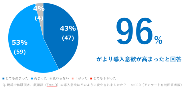 来場者の96%が、顔認証(FreeiD)の導入意欲が、体験後に「より高まった」と回答