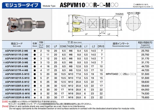 - 高精度ボディ(ASPV)は呼び径に近い刃径精度を持ち、加工後の削り残り量を低減します。