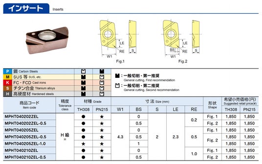 - 豊富なインサート形状と材種ラインナップにより、鉄/非鉄を問わず幅広い被削材の高品位な加工を実現します。