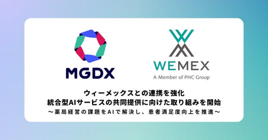 株式会社サイバーエージェント(本社:東京都渋谷区、代表取締役:藤田晋、東証プライム市場:証券コード4751)の連結子会社である医療AIカンパニー株式会社MG-DX(本社:東京都渋谷区、代表取締役:堂前 紀郎、以下「当社」)は、PHCホールディングス株式会社(本社:東京都千代田区)傘下のウィーメックス株式会社(代表取締役社長:高橋 秀明、本社:東京都渋谷区、以下「ウィーメックス」)との連携を強化し、新たに統合型AIサービスの共同提供に向けた取り組みを開始することをお知らせします。