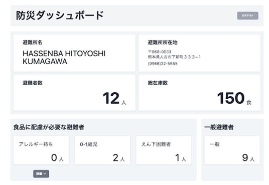 人吉市のダッシュボード上に避難者の属性が表示される様子