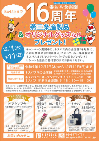 感謝の気持ちを込めて、12月1日(木)~11日(日)の11日間「新潟食楽園16周年祭」を開催中です。