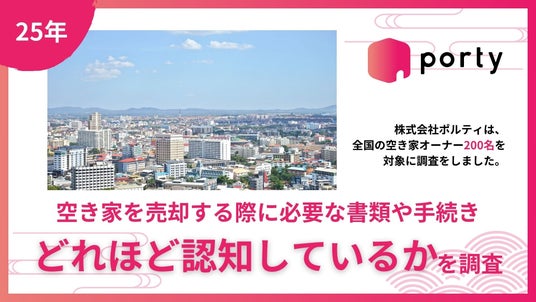 株式会社ポルティ(神奈川県川崎市、代表取締役:平 瑶平、以下「ポルティ」)は、全国の空き家オーナー(または相続予定の方)200名を対象に、空き家を売却する際に必要な書類や手続きについてどれほど認知しているかを調査しました。