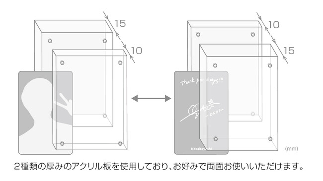 ・丈夫で厚みのあるアクリル板で写真を挟み込んで飾るフォトフレーム