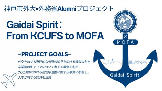この度、外務省に勤務している神戸市外大の卒業生有志と連携し、神戸市外大の在校生と外務省勤務の卒業生有志が多面的・多角的につながるプロジェクト「Gaidai Spirit: From KCUFS to MOFA」を始動させました。外務省勤務の卒業生有志と大学が、年間を通じて継続的に取り組む本プロジェクトはこれまでにない画期的な試みです。