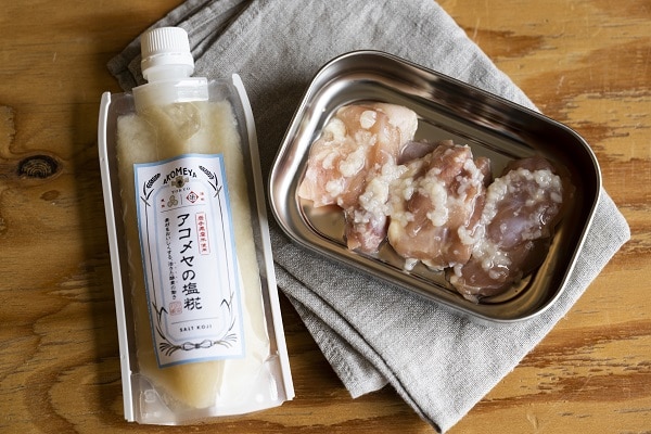 職人が長年培った米糀づくりの適度な温度管理で発酵させ、さらに蒸し米と天日塩を加えることで、甘味と塩味のバランスがよく、まろやかで芳醇な香りに仕上がっています。お肉や魚を漬けて、酵素の力で筋繊維が分解され柔らかい仕上がりに。マヨネーズやオイルと混ぜてディップにもおすすめです。