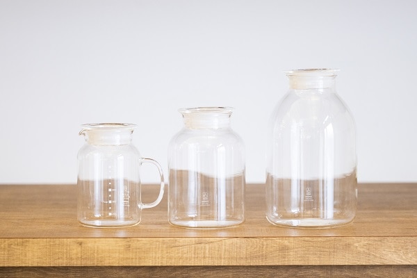 921年(大正10年)創業の、日本で初めて耐熱ガラスの開発に成功した老舗メーカー「HARIO」のソースポットと保存びん。ソースやドレッシングを作るのに便利なハンドル付きのポットはレンジ加熱ができ、そのまま冷蔵庫で保存もできます。手仕事保存びんはお酢を使ってフルーツビネガーやピクルスなどを作るのにもぴったり。自家製米糀づくりにおすすめです。