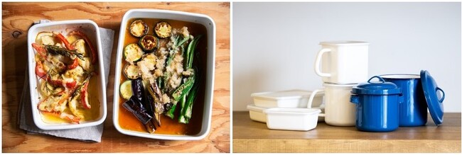 琺瑯(ほうろう)を作り続けて80年以上日本製にこだわり続ける野田琺瑯の保存容器。酸や塩分に強い耐久性を持ち、貯蔵や醸造に最適。直火を使った加熱に使えたり、冷却性も高く幅広い調理や保存に適しています。硬度が高く、汚れやにおいも付きにくいため、雑菌が繁殖しにくく清潔に保てます。