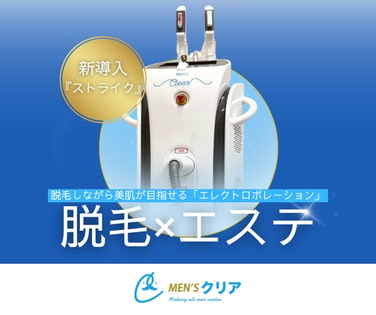 株式会社クリア(本社:東京都渋谷区、代表取締役社長:勝沼 潤)が運営するメンズ脱⽑サロン「メンズクリア」は全国56店舗に、エレクトロポレーションによる肌への美容成分導入に特化した脱⽑機「ストライク」を導入しました。