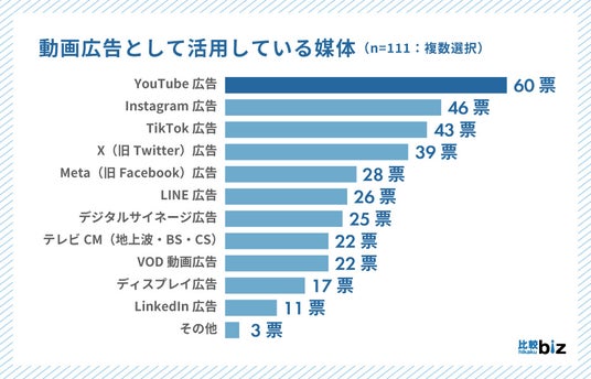 Q.動画広告として活用している媒体(n=111) ※複数選択可能