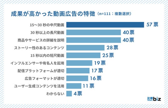 Q.成果が高かった動画広告の特徴(n=111) ※複数選択可能