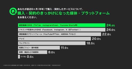 直近6ヶ月で最も購買に影響したメディアは「TikTok・Instagram Reels・YouTube Shorts」などの縦型動画SNS