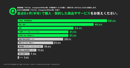 購買に至ったきっかけとなるプラットフォームについては、「TikTok」「Instagram Reels」「YouTube Shorts」などの縦型動画SNSが最多であり、テレビや新聞、雑誌を上回る結果となりました。