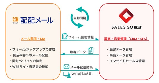 SFAとインサイドセールスで営業のデジタル化と売上アップを支援するSALES GO株式会社(所在地:東京都品川区、代表取締役社長:内山 雄輝、以下SALES GO)が提供する国内最新※SFA「SALES GO ISM」は、ITサービスで企業の成長を継続的に支援する株式会社ラクス(本社:東京都渋谷区、代表取締役:中村崇則、以下ラクス)が提供する「配配メール」と、システム連携を開始しました。