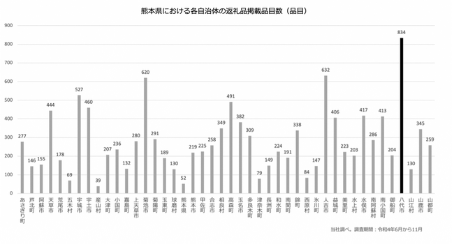 そんな八代市ではありますが、ふるさと納税に積極的に取り組んでいる事業者さんと一緒にがんばっています。現時点で、事業者は約180事業者。返礼品で1000品目ほどあります。