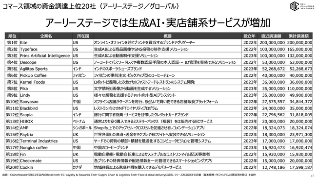 7. コマース領域の資金調達上位20社(シリーズA/グローバル)