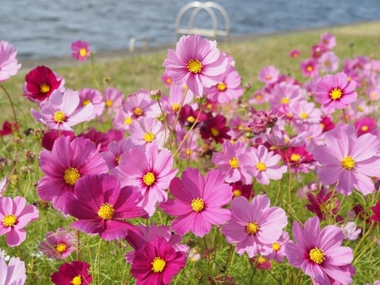 コスモスはキク科の1年草で、秋に花が咲きアキザクラ(秋桜)の和名もあります。