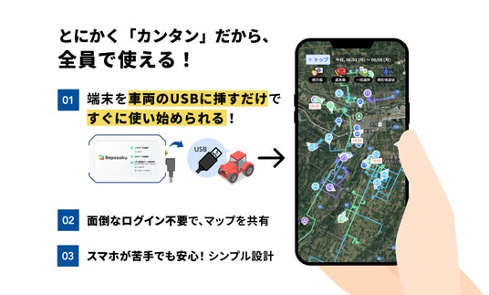 自動作成される日報や稼働データ(実稼働・アイドリング等)の分析により、車両や人員の最適配置、投資判断の材料を提供します 。 熟練者の作業履歴(軌跡データ)は、若手や新規就農者にとって貴重な参考資料となり、早期育成を支援します 。