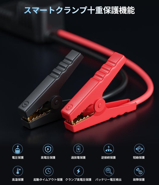 ・一般的なジャンパーケーブルとは異なり、本製品は十重の安全保護機能と電圧表示機能を備えたスマートケーブルを採用します。過電圧・過熱・逆接続などのリスクを防ぎ、安全性を大幅に向上させています。