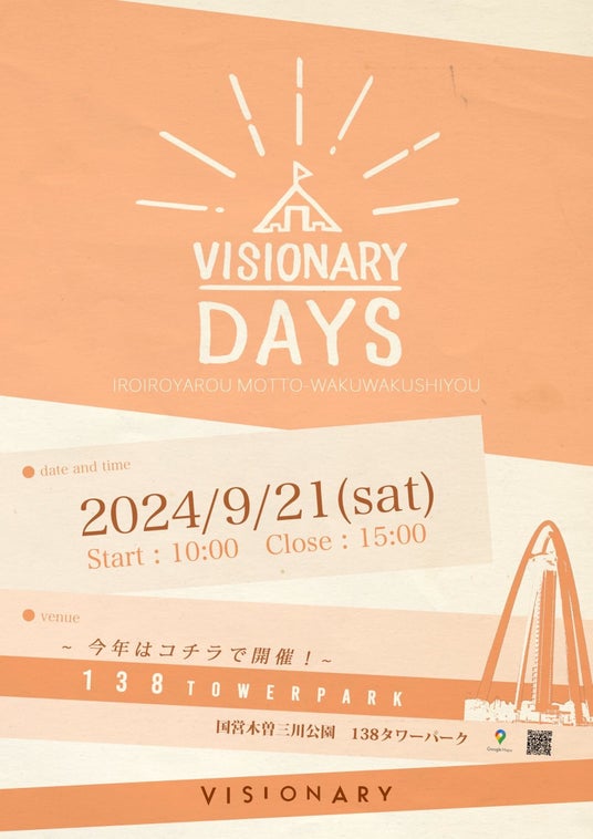 株式会社ビジョナリー(代表取締役社長:丹羽 悠介、本社:愛知県名古屋市)は、2024年9月21日(土)に、国営木曽三川公園 138タワーパーク イベント広場(愛知県一宮市)にて、大規模福祉イベント「VISIONARY DAYS」を開催いたします。