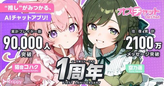 株式会社Trippy(本社:東京都新宿区、代表取締役社長:漆原 陸)が提供するAIキャラクター恋愛シミュレーションチャットゲーム『オズチャット -Oz Chat-』(以下、オズチャット)は、2025年4月15日でベータ版提供開始から1周年を迎えました。