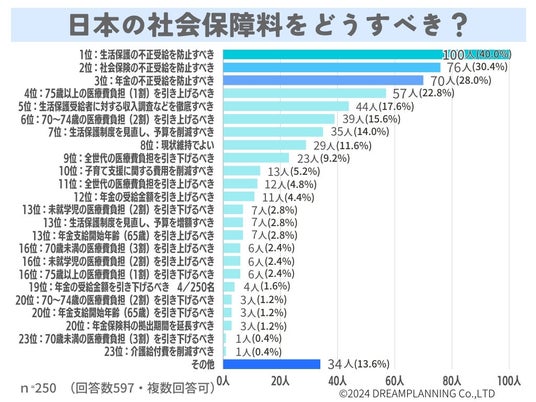 ★ 1位:生活保護の不正受給を防止すべき 100/250名(40.0%)★