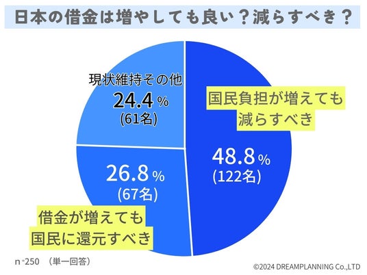日本の借金は増やしても良い?減らすべき?(n=250・単一回答)