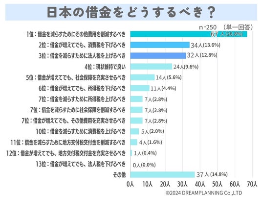 日本の借金を減らすために、行政のムダを削減すべきという意見が最多でした。