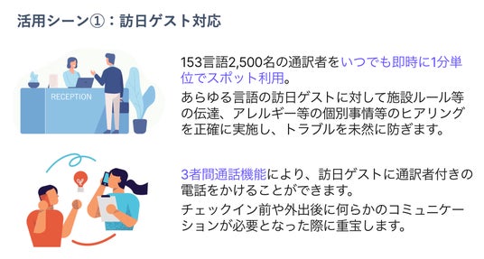 そこで、JR東海ホテルズと当社は共同で、当社の提供する通訳アプリ『Oyraa』を活用して希少言語や深夜帯なども効率的にカバーできる最適な多言語コミュニケーション体制構築に向けた実証実験を行うことを決定いたしました。