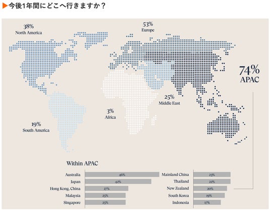 また、Marriott Internationalがアジア諸国の富裕層向けの調査を行ったところ、実に42%が「今後1年以内に日本を訪れる予定である」と回答しています。観光地や宿泊施設にとっては、今後はこうした購買力のあるアジア諸国の準富裕層・富裕層を以下に取り込んでいくかが鍵となります。