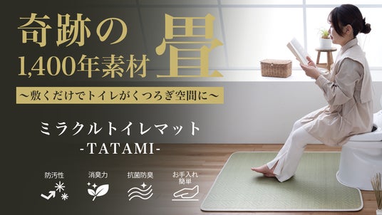 創業138年の老舗い草商品メーカーである株式会社イケヒコ・コーポレーション(本社:福岡県大木町、代表取締役:猪口耕成)は、2025年4月23日(水)より国産い草を100%使用した「ミラクルトイレマット -TATAMI-」をクラウドファンディングサイト「Makuake」にて先行販売いたします。自分ひとりの時間に、ほっとひと息したり、スマホでニュースを見たりと、現代のトイレは単なる生活空間を超えて“ひとりになれるくつろぎの場”として捉えられるようになっています。そんな“プライベートなひととき”を畳のチカラでもっと快適に、もっと気持ちよく整えます。新生活にも慣れて疲れも出てくるこの時期、畳という和の素材を暮らしに取り入れてみませんか?募集期間は2025年4月25(金)~6月9日(月)です。