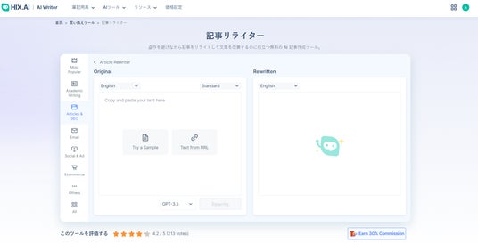HIX.AIの記事リライターは、使いやすいインターフェースを備えており、すべてのユーザーにとって理想的なツールです。ユーザーは、簡単に文章を再構成し、必要な微調整を加えながら、オリジナルなコンテンツを生成することができます。