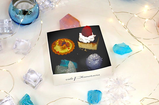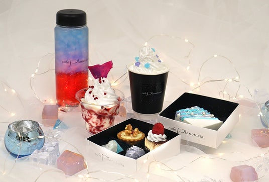 会場となるDOME1では、プラネタリアTOKYO内でご購入いただいたメニューに限り飲食が可能です。星と氷が輝く幻想的な映像を眺めながら、氷やクリスタルをイメージした限定メニューをお楽しみください。