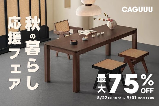 この度、CAGUUU株式会社(本社:東京都港区、代表取締役社長:中村勇輝)は、おしゃれで高品質な家具をリーズナブルな価格で展開する「CAGUUU」(呼称:カグー)にて、8月22日(金)18:00~9月1日(月)12:00まで「秋の暮らし応援フェア」を開催いたします。