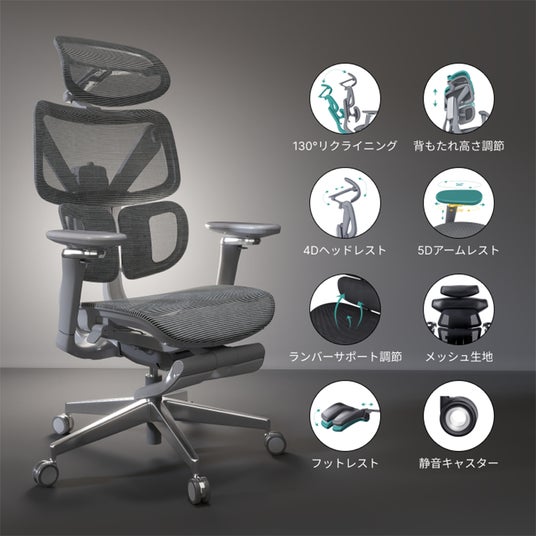 美しさと快適さを両立したチェアで、あなたのワークスペースを格上げ。背もたれは5段階昇降で細やかな姿勢調整が可能。首・背中・腰の3ゾーンが連動して身体をしっかり支え、長時間のデスクワークや作業でも疲れにくく快適に。カラーはインテリアに映えるグレー、爽やかなライトブルー、柔らかなピンクの3色をご用意。