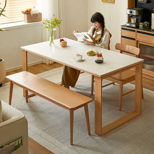 自然な風合いと高い耐久性を兼ね備えたダイニングテーブル。ドイツ産の高品質ブナ材を使用し、変色しにくく、細やかで目立たない木目と丈夫さが魅力です。爽やかな印象を与える全面セラミック天板は、隙間がないため汚れが溜まりにくく、一拭きで簡単に清潔感を保てます。