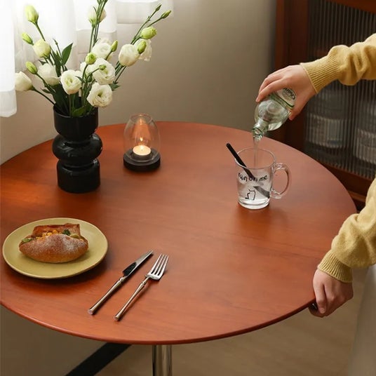 [34%OFF]ツゲ材 木製ミニラウンドダイニングテーブル