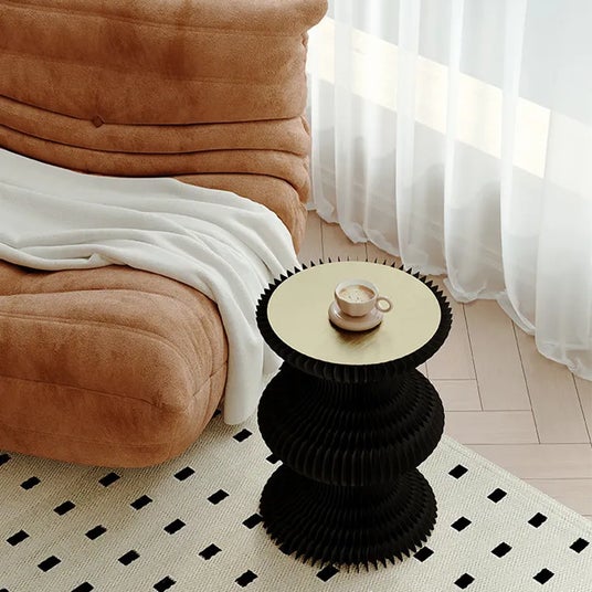 異素材が織りなす高級感と機能美が魅力のクラフト紙デザインサイドテーブル。ブロンズ色の金属とクラフト紙の融合が、空間に洗練されたアクセントをプラス。ハニカム構造による美しい六角形のラインと高い安定性で、安心してお使いいただけます。折り畳み式で収納も省スペース、軽量設計で移動もラクラク。