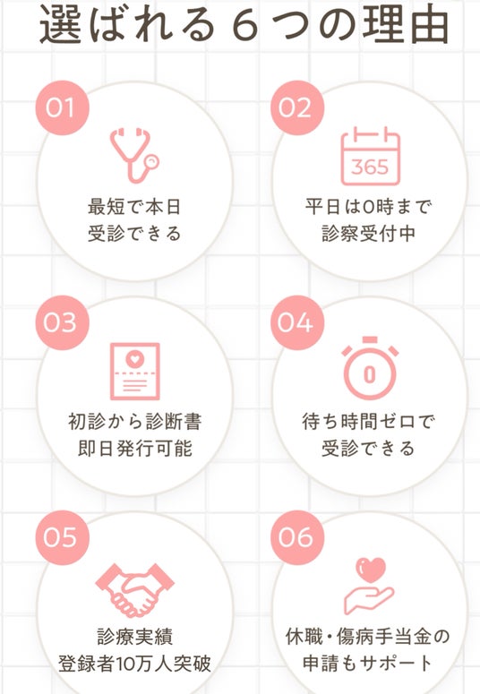 診断書の当日発行や休職・傷病手当金の申請手続きの支援をはじめ、これまでの新宿・横浜・柏各院での診療実績をもとに患者様1人ひとりの症状に適したサポートを提供させていただきます。