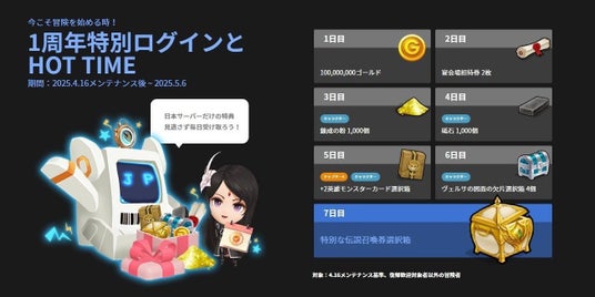 日本サービス1周年記念イベントの詳細は、特設サイトや公式サイトのお知らせをご確認ください。