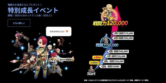 J1とJ3の既存サーバーで新規作成されたキャラクター(Gサーバー除く)を対象に、成長進行に応じて豪華報酬を提供する育成支援イベントです。