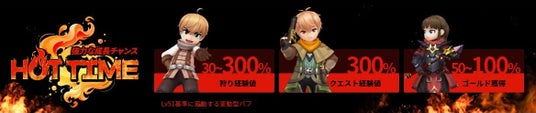 イベント期間中は、狩り及びクエスト経験値が最大300%、ゴールド獲得が最大100%増加いたします。